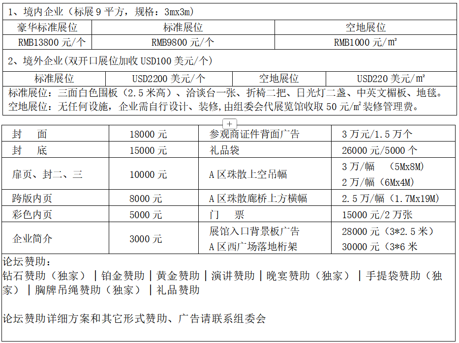 【展位费用及会刊广告费用】