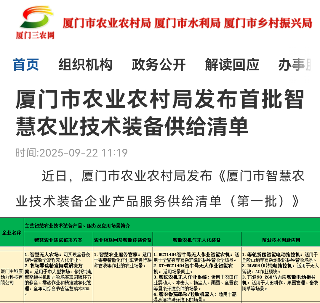 中科原动力入选首批厦门智慧农业技术装备供给清单