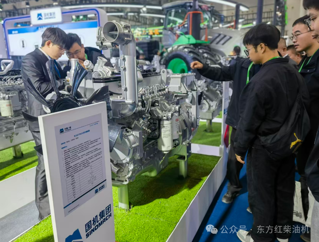 在国机集团展区,东方红柴油机展台的十台 “黄金动力” 柴油机构成了最吸睛的风景线。这批覆盖 20-460 马力的动力装备,实现了功率段的无缝衔接与高低搭配,从小型农机具到重型