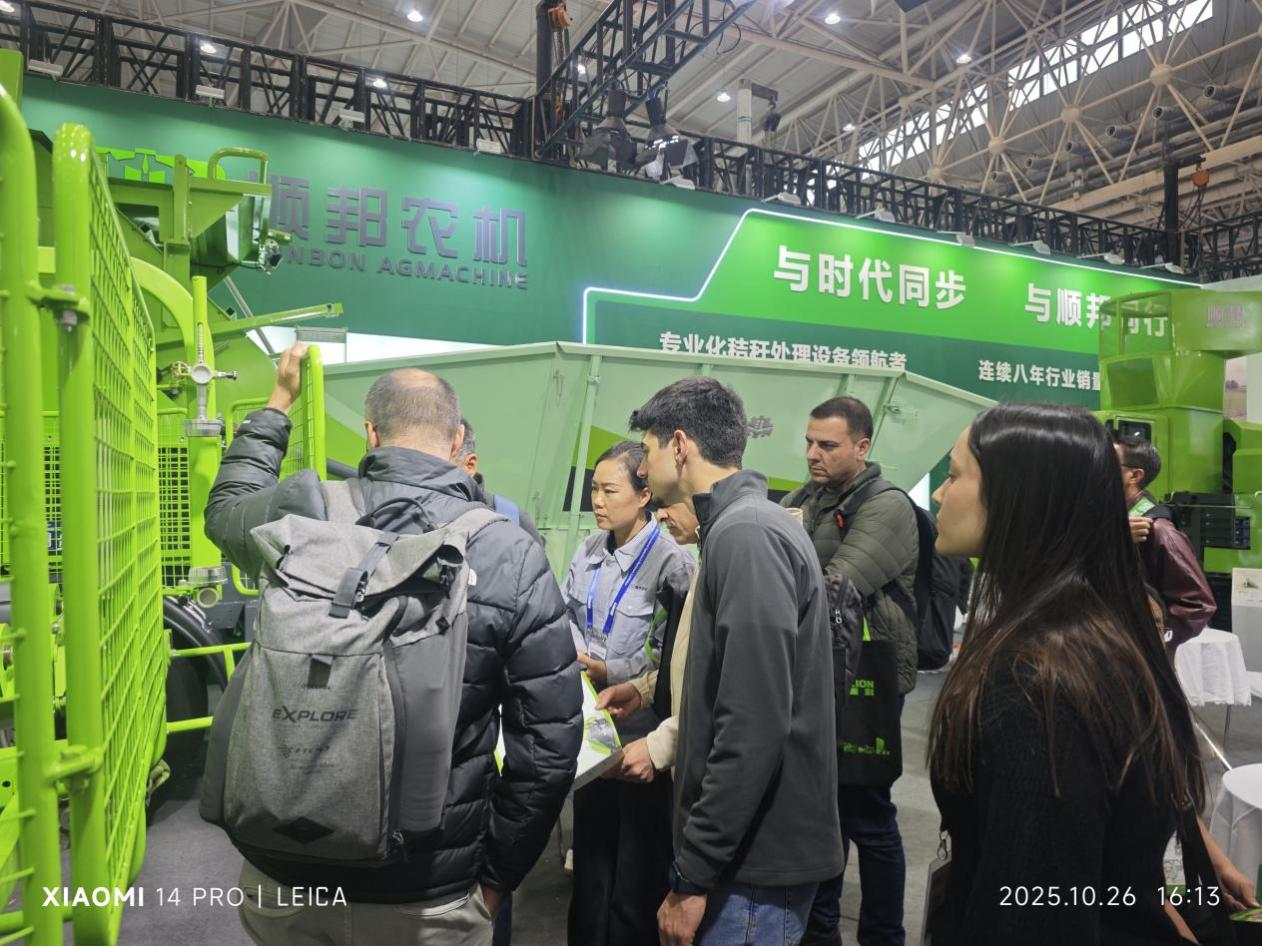 秸秆专业化收储设备领航企业——四平市顺邦农机制造有限公司(简称“顺邦农机”)携多款明星产品重磅亮相展会。作为国际农机展连续多年来从未缺席的重要级展商,顺邦展台人气爆棚,凭借专业、高效、耐用、高性价比等特点积累的广泛用户基础,以及代表着鲜活生命力“绿意盎然”的主题色彩,一经开展变成为了全场焦点,新老用户齐聚展台前,参观、咨询、洽谈的人流络绎不绝。