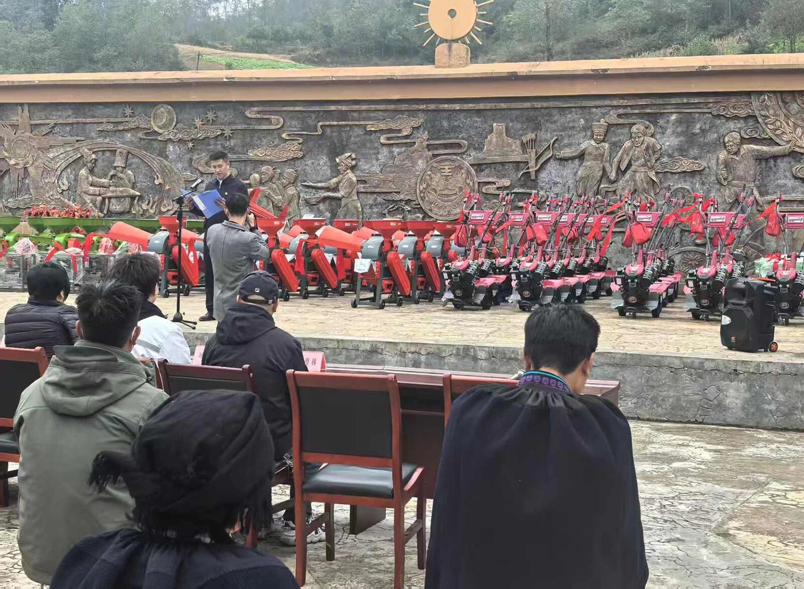微耕机、电动修枝剪等。捐赠仪式上,谷莫村广场上整齐排列着一台台系着红绸的新农机,它们为这个平均海拔2100米的彝家村寨带来了新的农业生产方式。这些崭新的微耕机专门针对坡地耕作设计,操作起来轻便灵活;电动修枝剪在修枝、采摘时灵巧便捷,将大大提升当地的农业生产效率。
