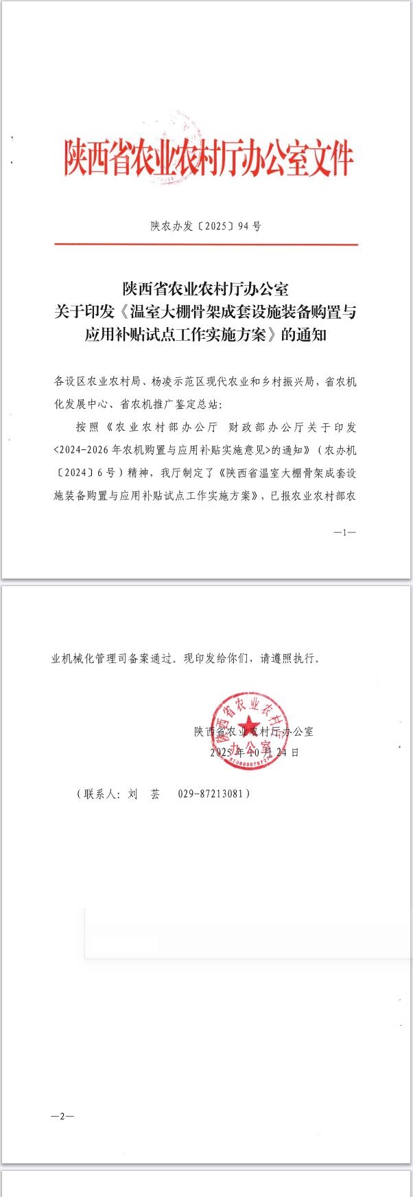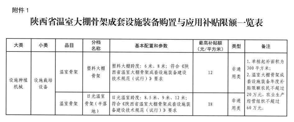 陕西省印发《温室大棚骨架成套设施装备购置与应用补贴试点工作实施方案》