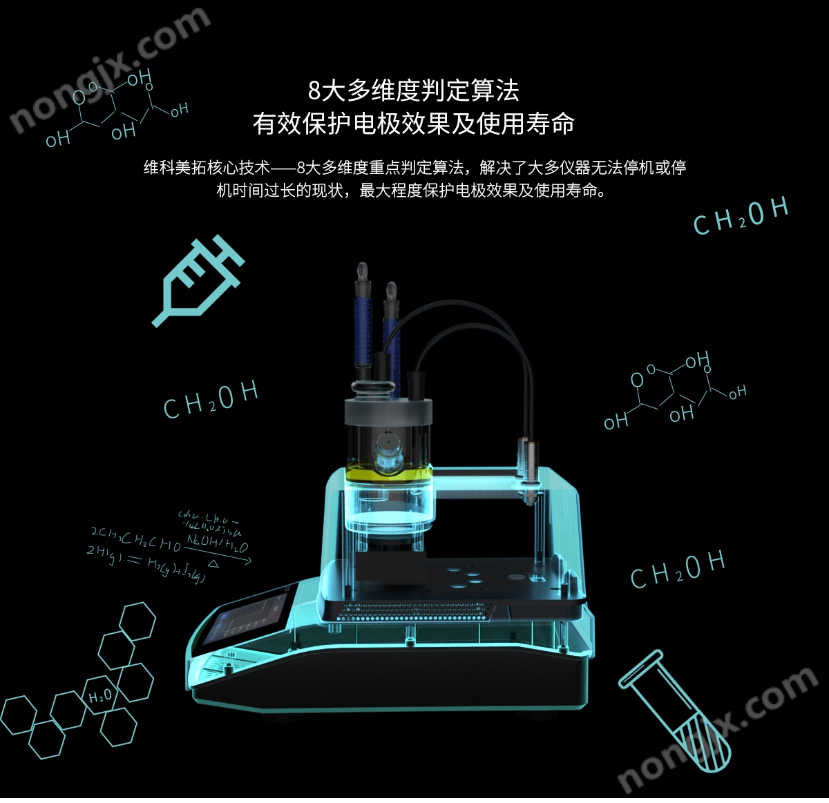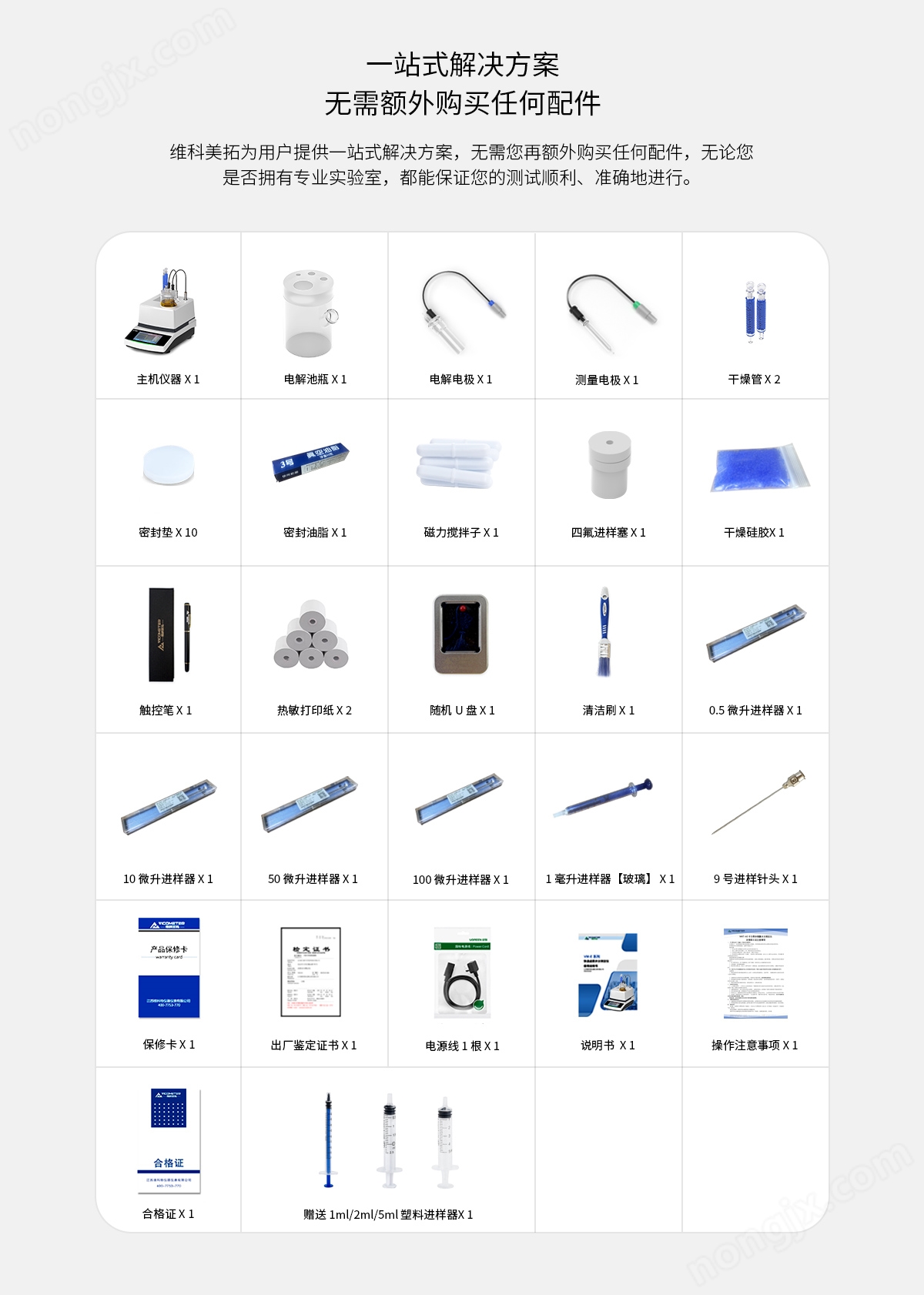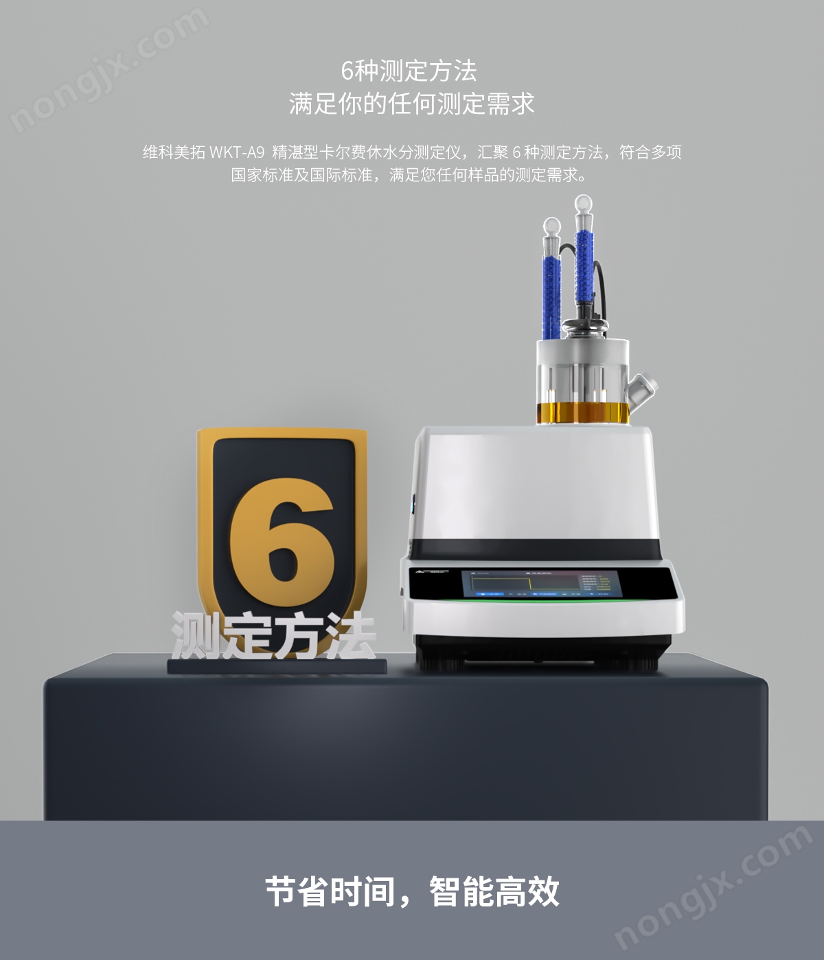 维科美拓WKT-A9型卡尔费休水分仪利用的是卡尔费休库仑法(电量法)的原理去快速测定样品中的微量水分,测定水分低至0.001ppm,可以在1分钟内测定出固体、液体、粉体的微量水分,仪器自带打印功能,可以储存500组数据,可实时查询并打印!新创的导航式提醒及内置电子说明书,让仪器操作不再复杂,WKT-A9型卡尔费休水分仪符合多项国家及国际水分测定标准,内置八种水分计算公式,6种测定方法能够适用各行业水分测定需要,广泛应用在化工、石油、医药、电力、食品、科研、检测等行业。