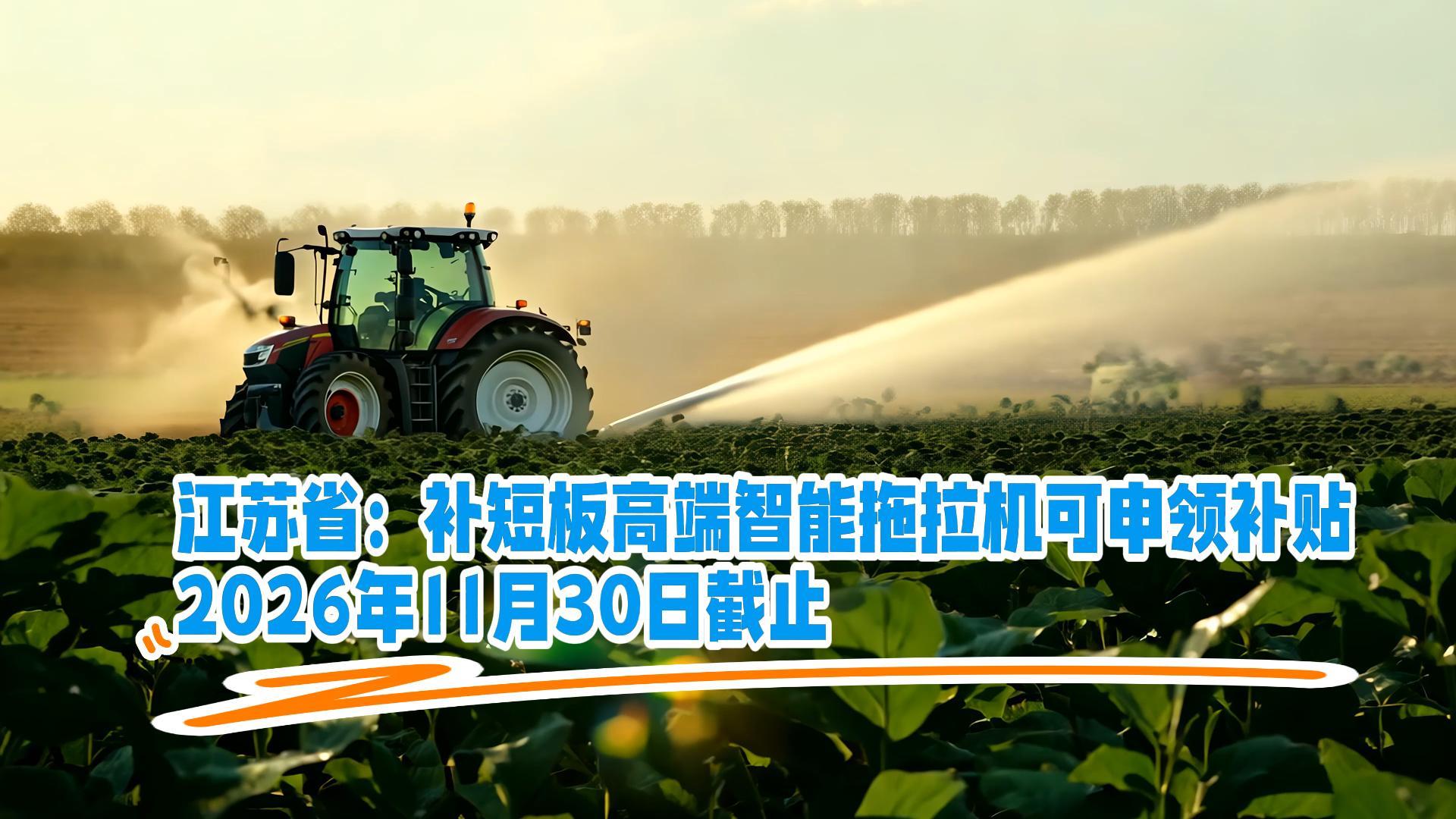 10532次播放 为顺应农机领域新质生产力发展要求,进一步落实“优机优补”政策,坚持以用促研发、促制造、促转化,根据农业农村部、财政部有关要求,江苏省农业农村厅近日印发《江苏省补短板200马力及以上无级变速高端智能拖拉机购置与应用补贴实施方案》,对国家重点推广的补短板200马力及以上无级变速高端智能拖拉机实施购置与应用补贴。实施区域为全省范围,以产粮(油)大县和国有农场为主。补贴详情如下: